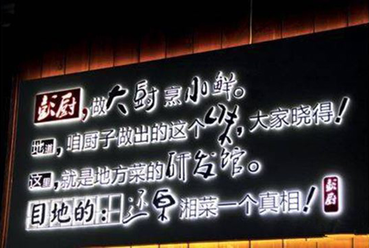 那么一個好的餐飲廣告招牌到底要要怎么設(shè)計制作呢?下面且聽湖南榮光廣告制作公司設(shè)計總監(jiān)給出的一些建議。