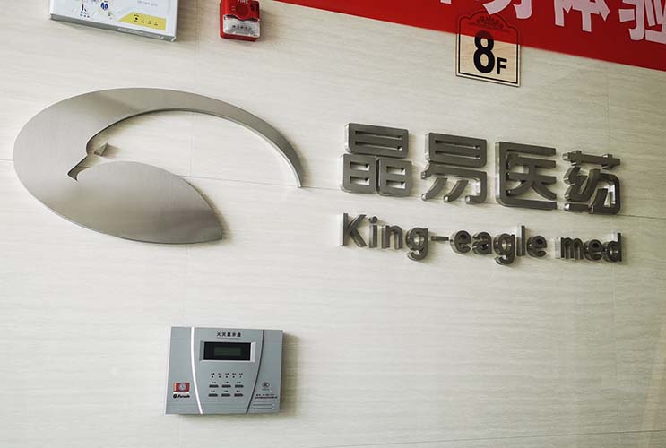長(zhǎng)沙醫(yī)藥公司不銹鋼立體字制作的電梯口形象墻。
