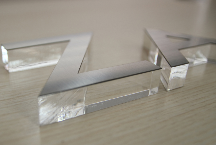 水晶字是一種亞克力實(shí)心制作的字體,他的厚度通常由底板(透明)和面板(有色亞克力或不銹鋼等材質(zhì))組成,越厚的水晶字,它的質(zhì)感和重量也就越重。