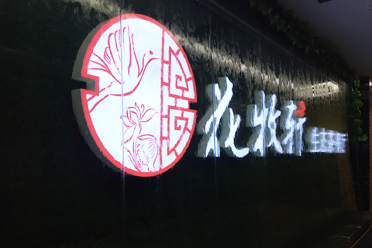 長沙水幕背景墻 餐廳不銹鋼發(fā)光字形象墻