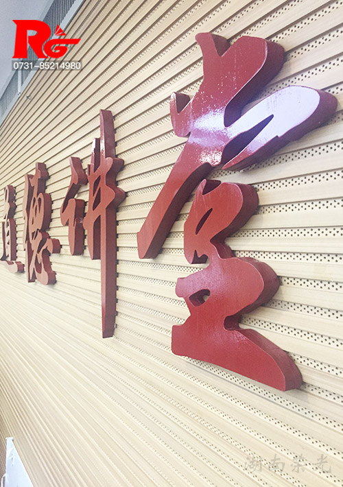 長沙市政府組織部道德講堂背景墻立體字制作,字體采用25MM實(shí)木雕刻,烤漆工藝制作。