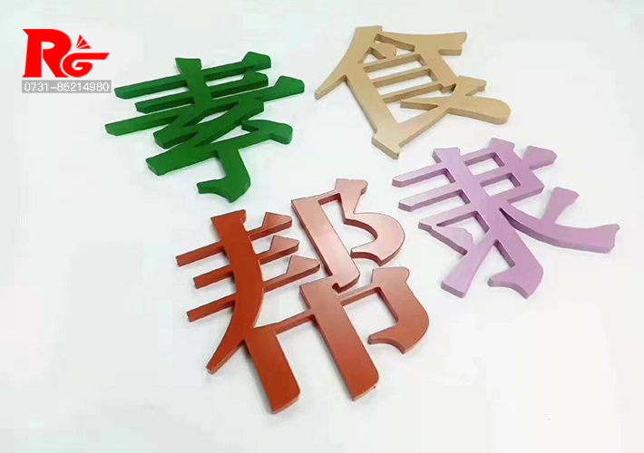 我公司生產(chǎn)的PVC烤漆字通常采用結(jié)皮PVC制作,在精工雕刻設(shè)備下料后精工打磨、噴漆、烤漆字、等等工藝制作而成。
